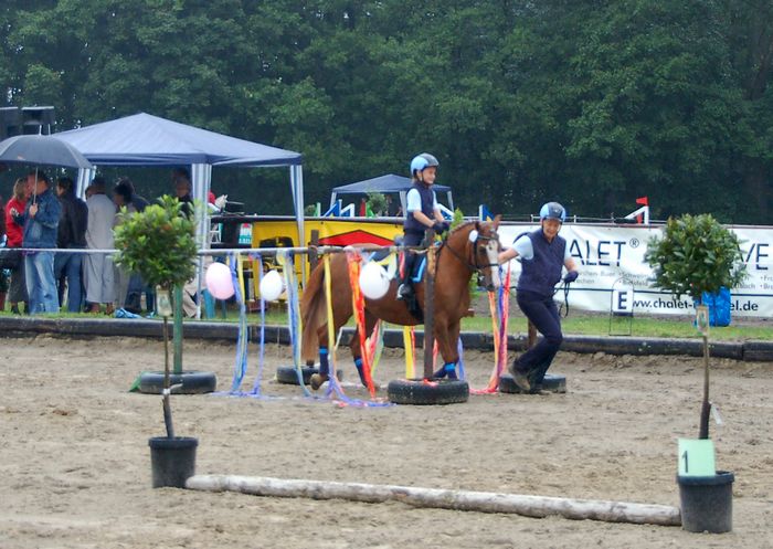 Das Schreck-Hindernis fürs Pony (sie hasst Flatterband)....