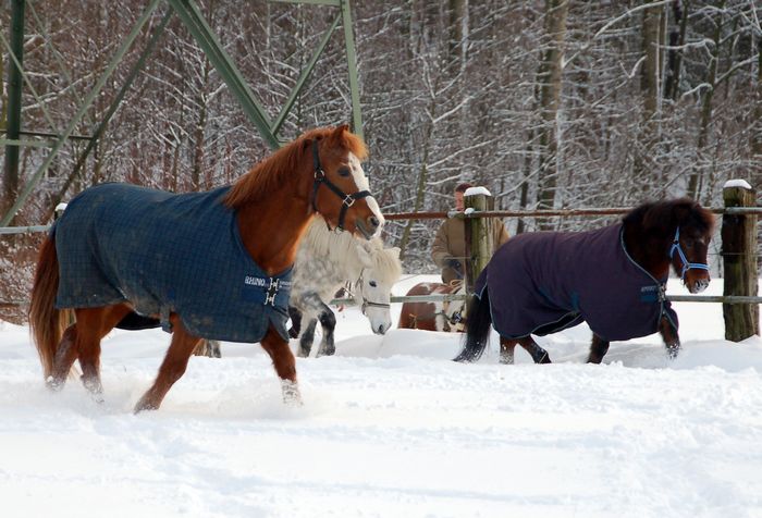 Mit Perle und Kilja die tiefverschneite Weide erkunden